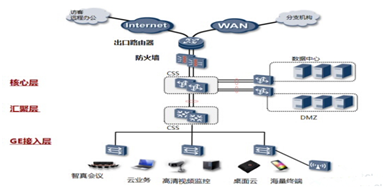 层次化设计:核心层、汇聚层、接入层,每层功能清晰,架构稳定,易于扩展和易于维护;