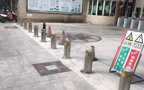 1. 防撞柱:防撞柱主要由升降体、机座组成。升降体由304不锈钢无缝管加工而成的,外壳由A3钢板焊接而成,具有高强的承重和抗撞能力。机体内无电器、线路设置,防水、安全。该装置埋设在车道上或大门的指定位置,通过值班人员的指令或智能系统限制车辆通行。